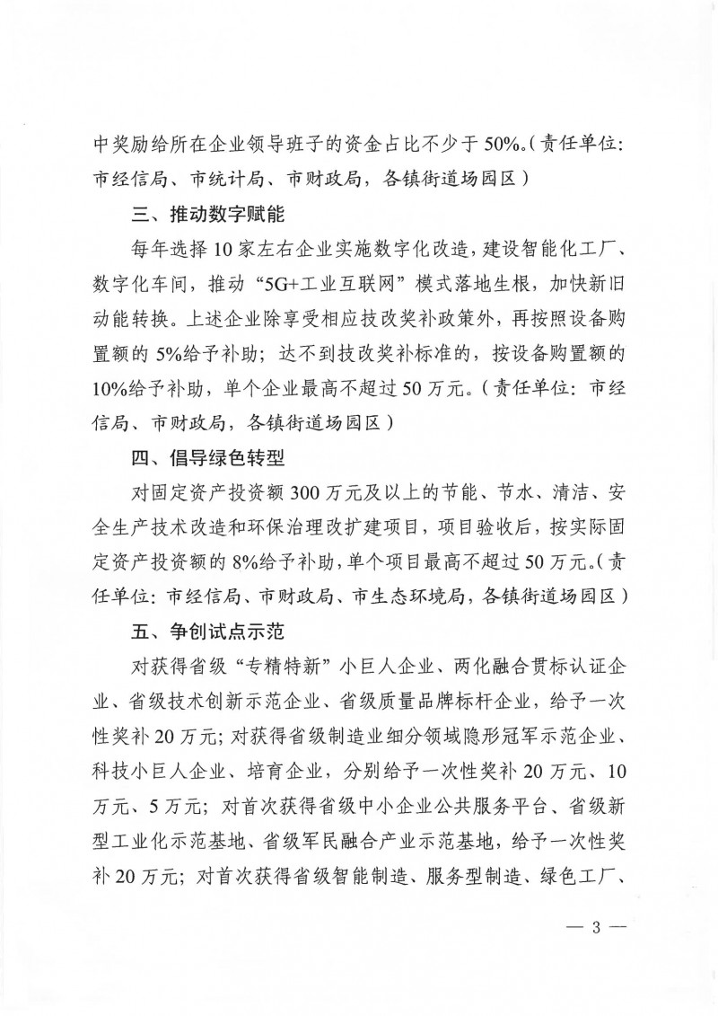 關于印發支持企業實施技術改造實現高質量發展若干政策的通知